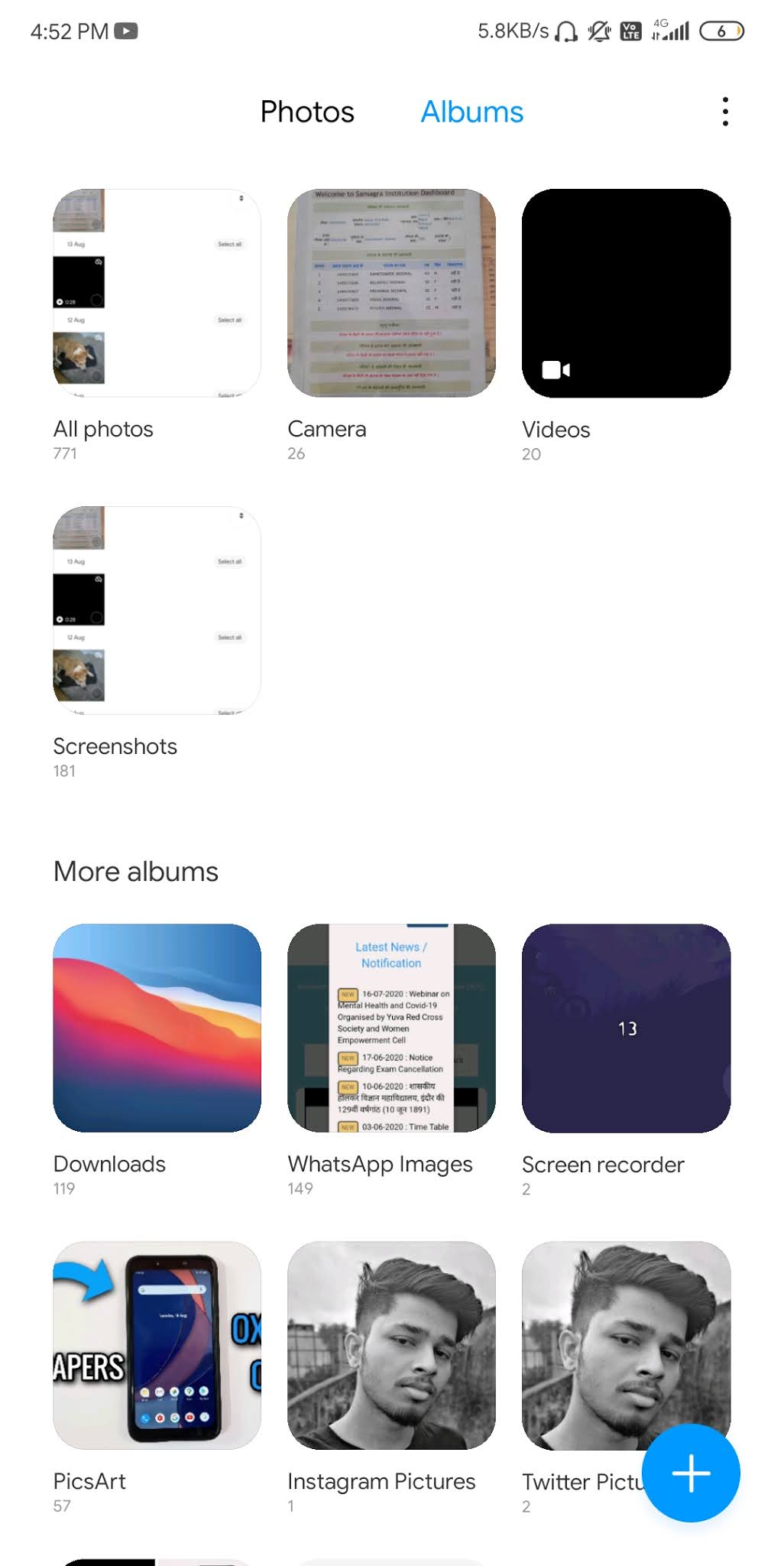 The main screen of the gallry app of miui 12 in miui 11 xioami phone have slight changes in the main front screen of the galary app. Including some new options ( on long press ).