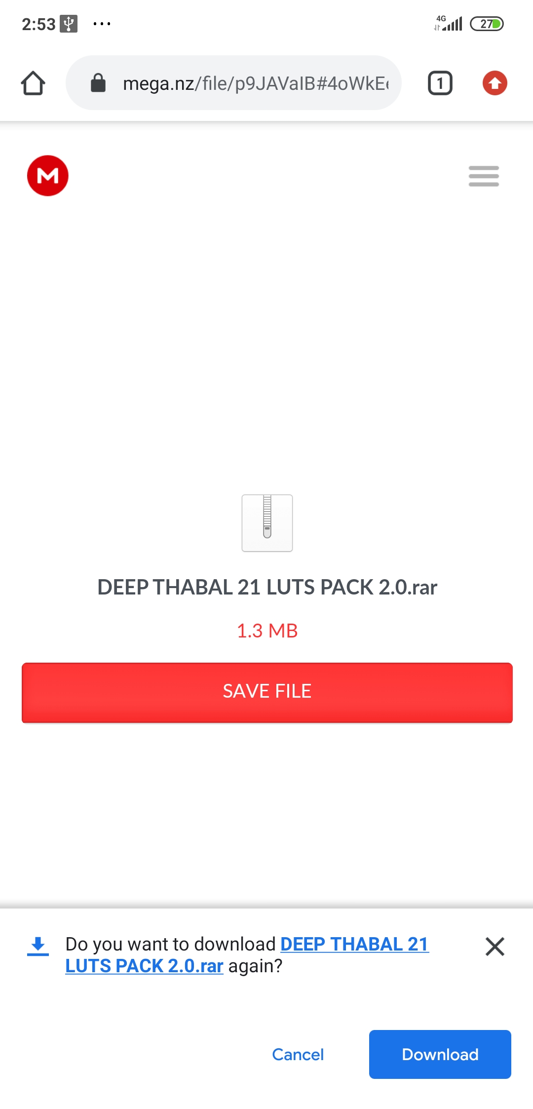 4) Click on the download button if you don’t have the mega app on your phone.