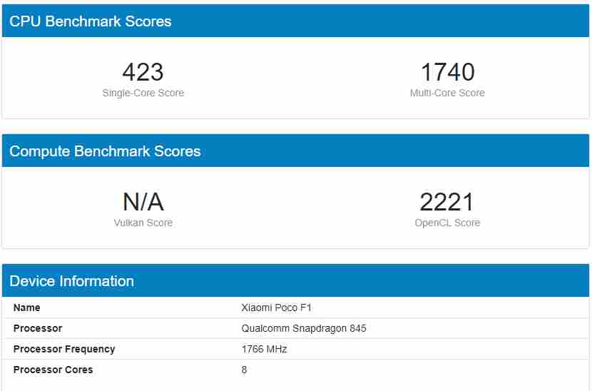 Poco F1 Benchmarks ( Geekbench )