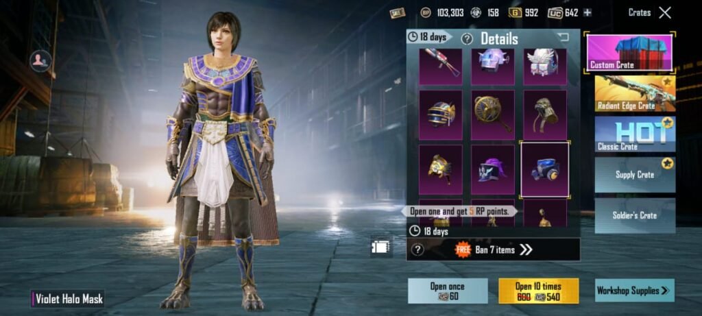 This crate feature mythic, legendary and epic outfits including whole set, gun skins, headset, mask, backpack skins, helmet, weapon skins, ornaments, etc.